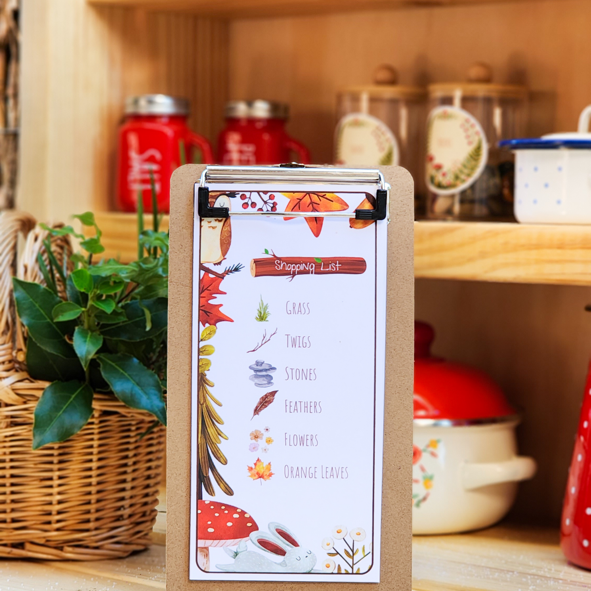 🧺 Foraging & Shopping List – A playful treasure hunt for ingredients found in nature or the garden. Kids can tick off items as they gather, practicing early literacy, memory, and planning skills.